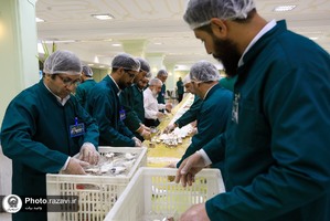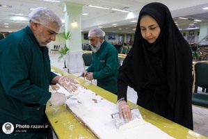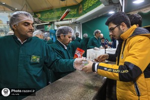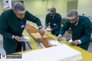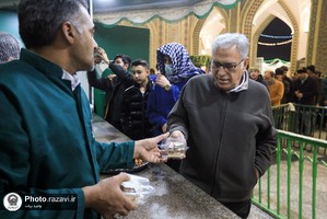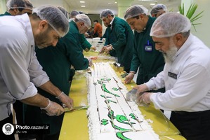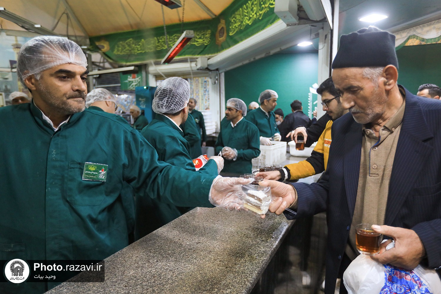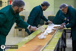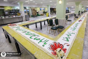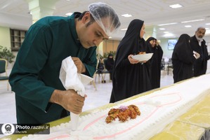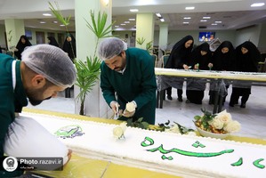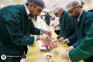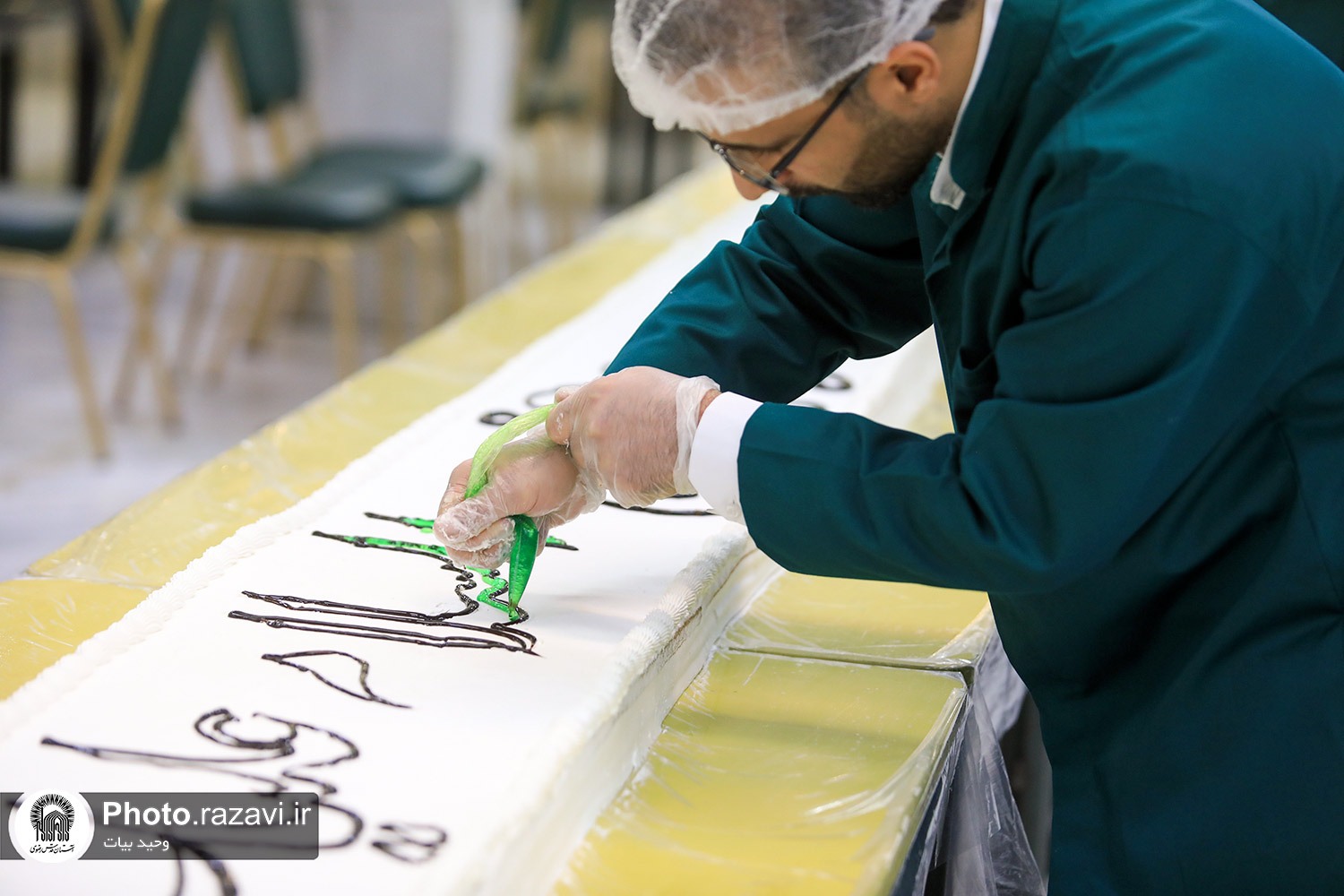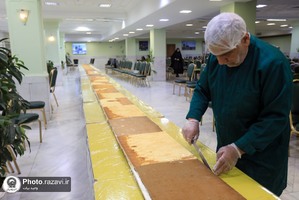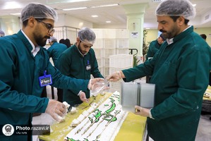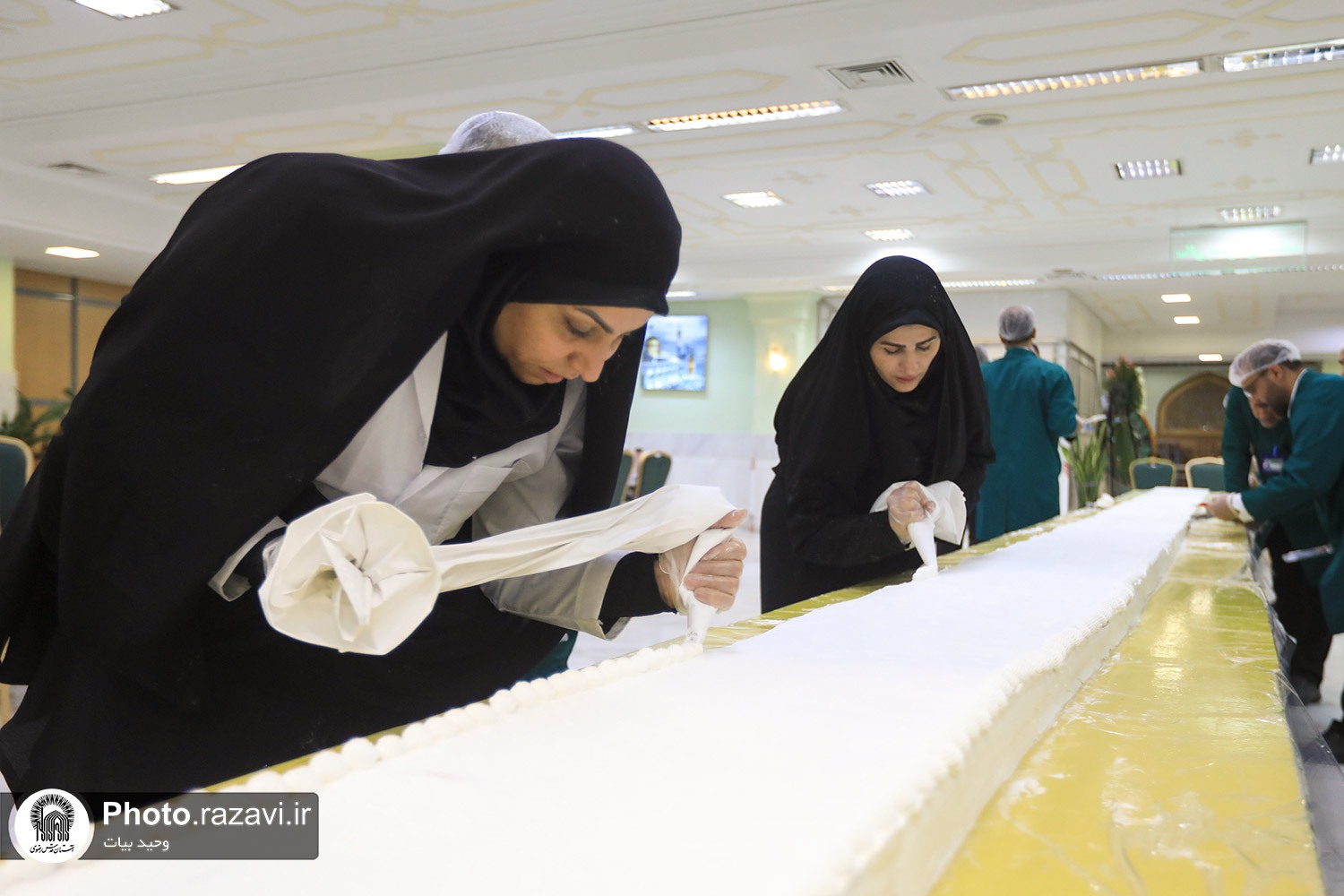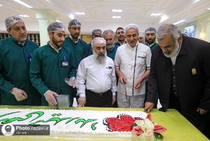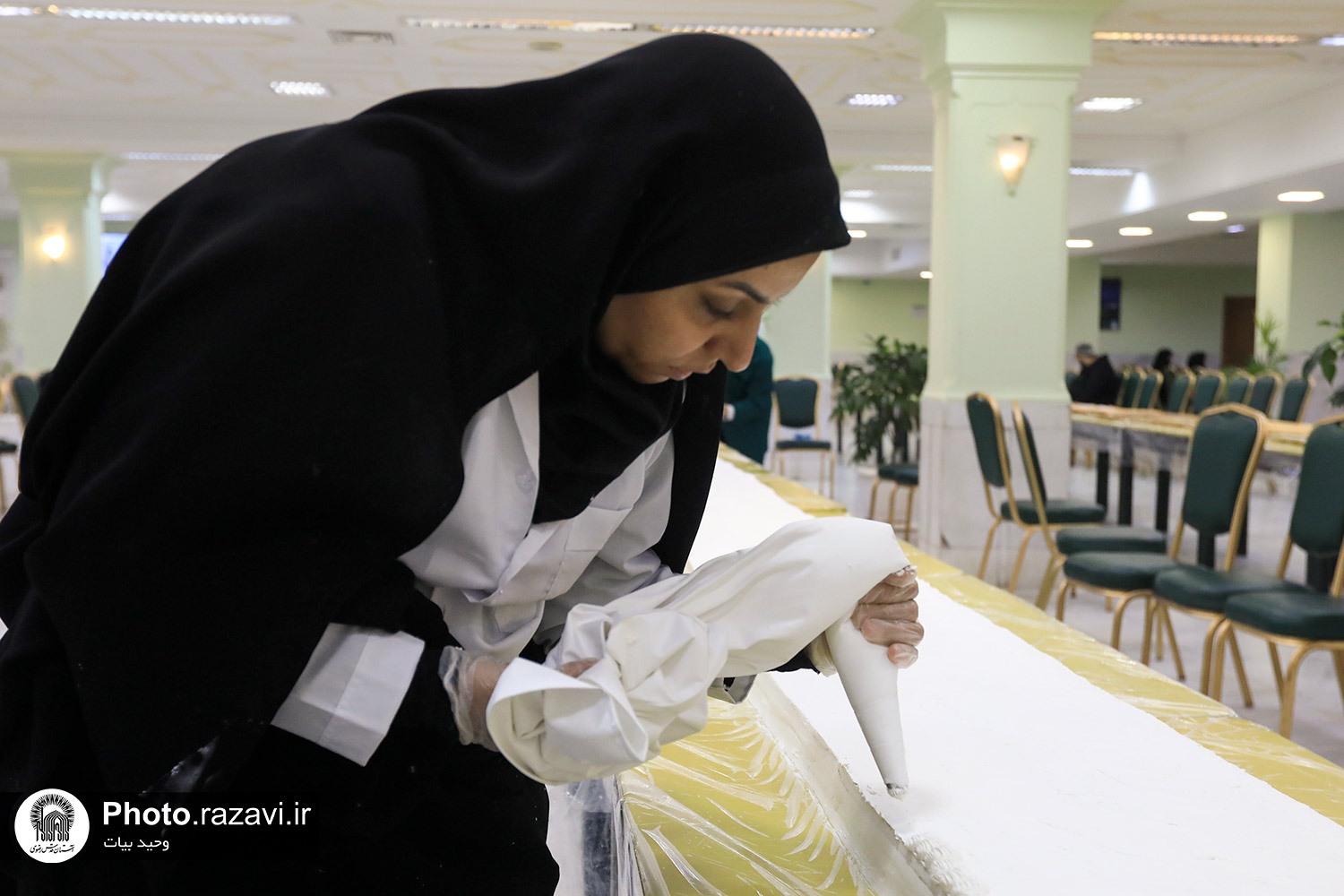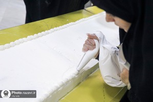 تهیه و توزیع کیک میلاد حضرت زهرا سلام الله علیها در حرم مطهر رضوی