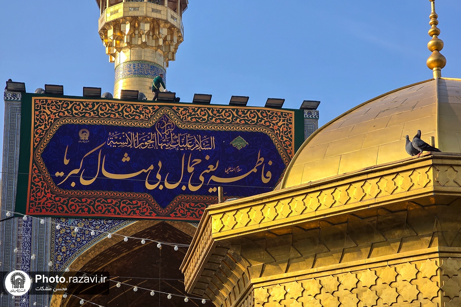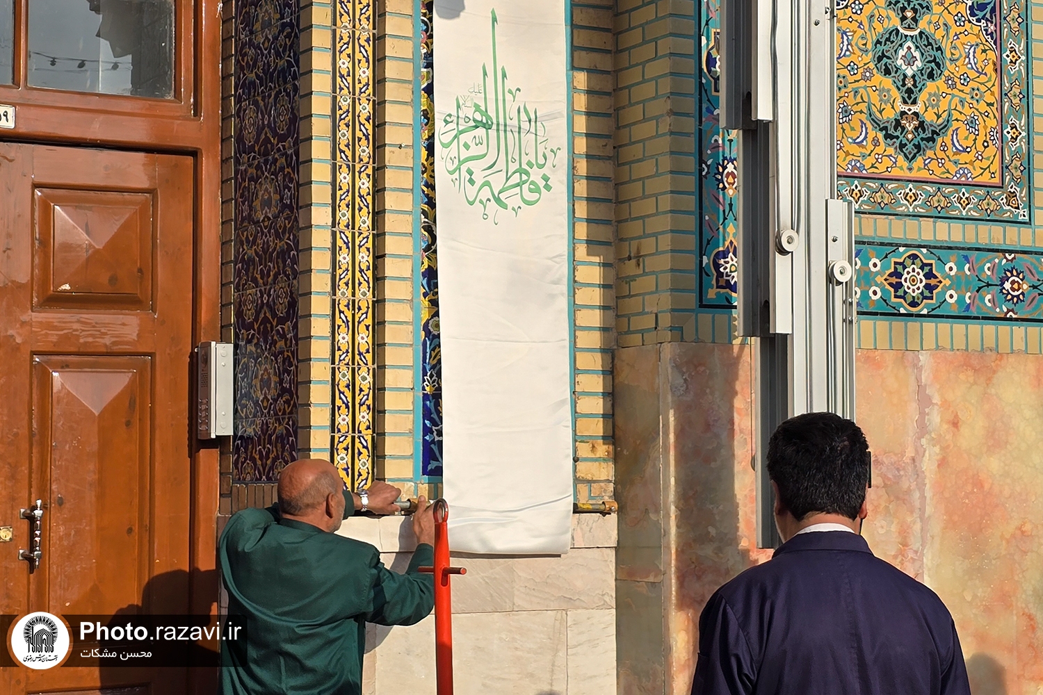 به مناسبت ولادت با سعادت حضرت فاطمه زهرا سلام‌الله علیها، کتیبه‌های مزین به نام آن بانوی بزرگ اسلام در صحن‌های متبرک حرم مطهر رضوی نصب شد.