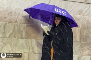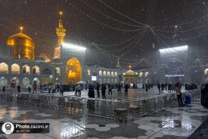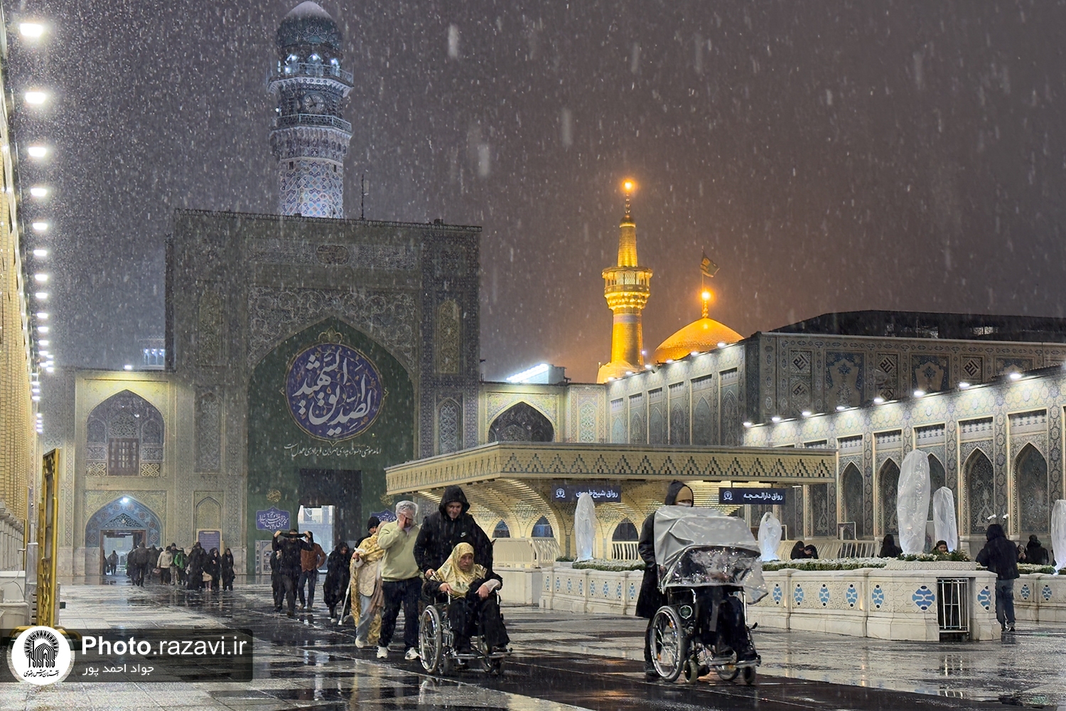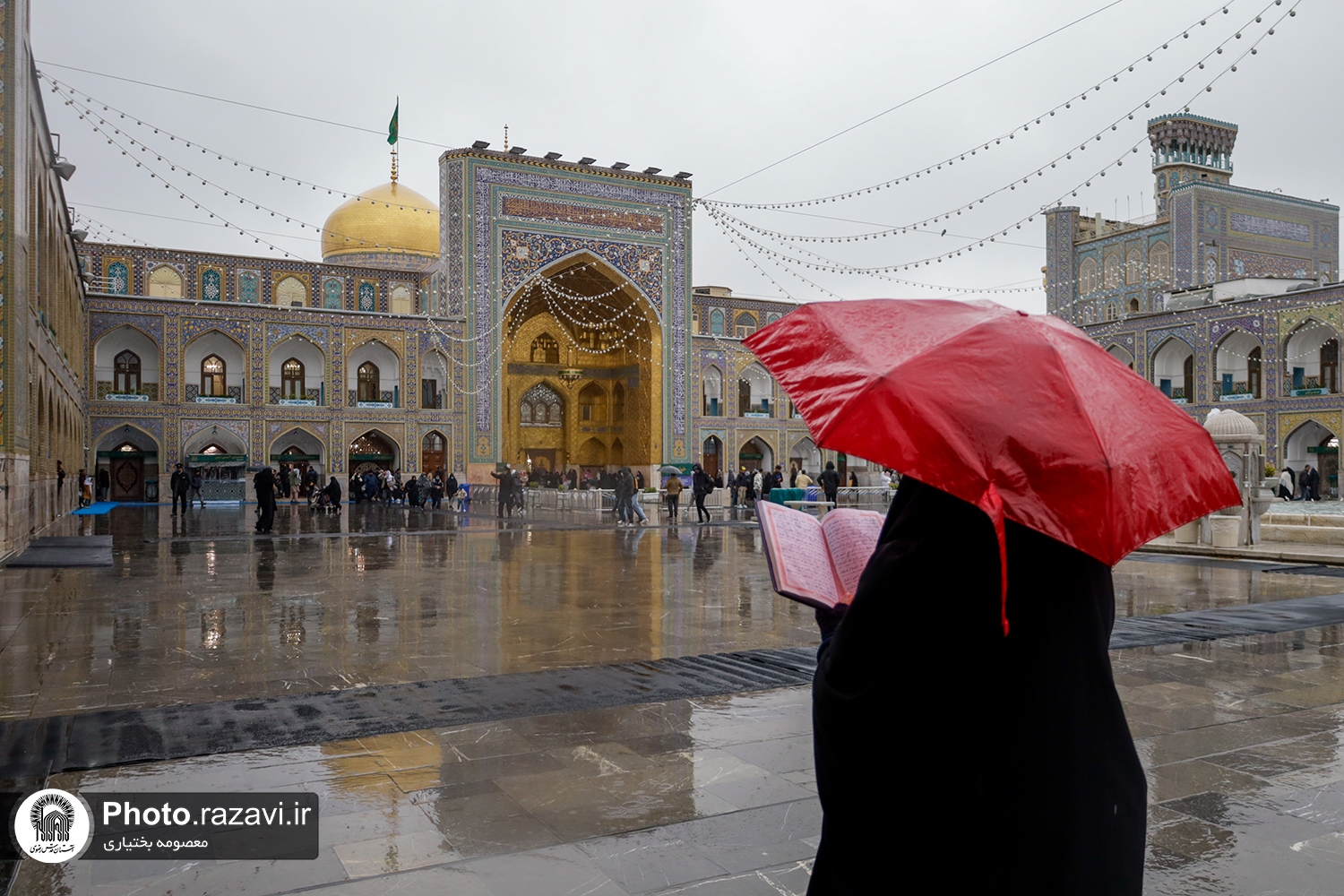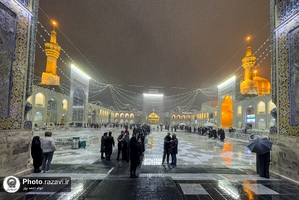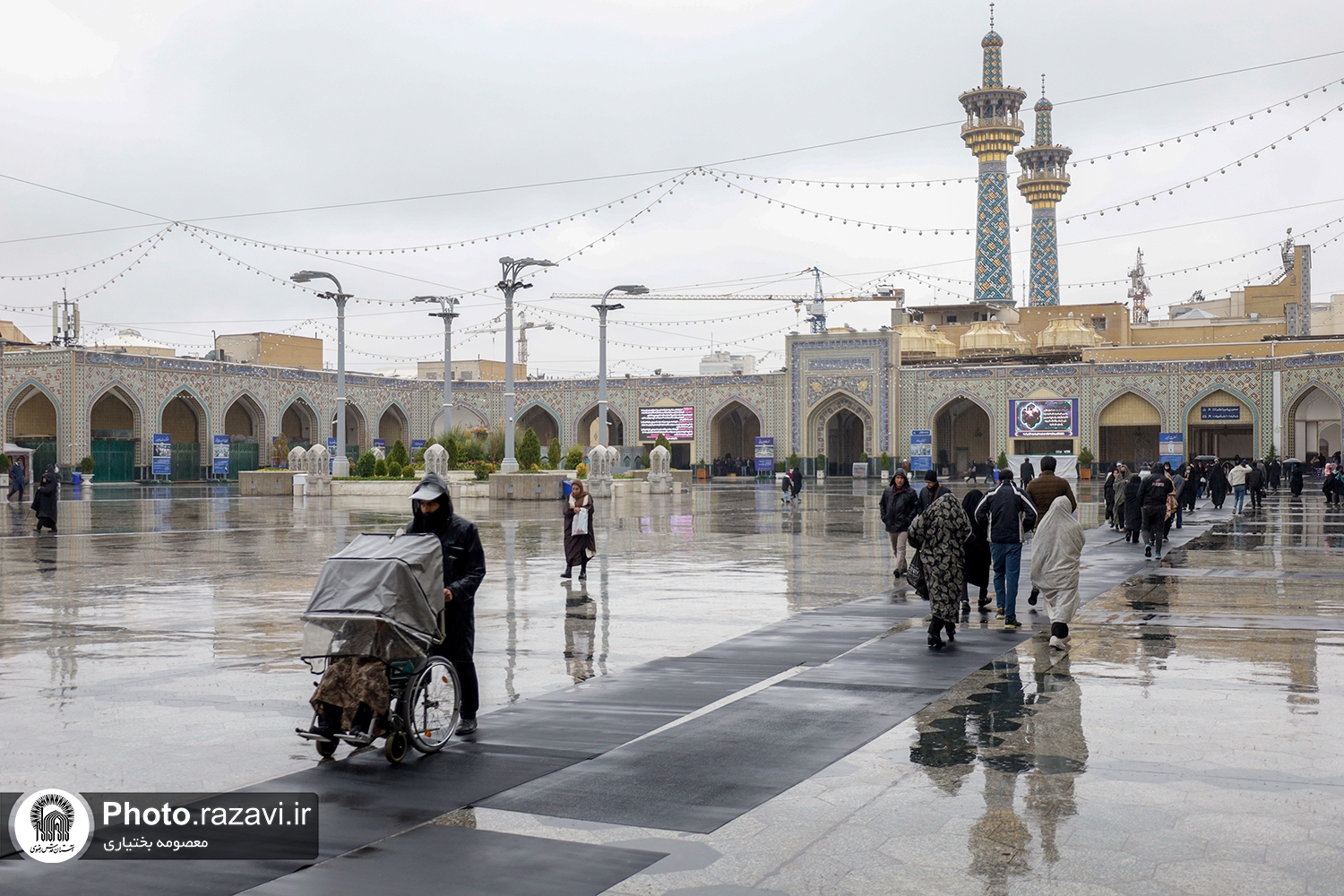 با ورود توده هوای سرد به شمال شرق کشور در روز چهارشنبه ۲۶ آذر ۱۴۰۴ و ادامه آن تا بامداد پنجشنبه، صحنها و رواقهای حرم مطهر رضوی شاهد بارش باران و برف بودند. این شرایط جوی جلوهای معنوی و چشمنواز به فضای حرم بخشید. خادمان بارگاه منور رضوی نیز با پهن کردن کفپوشها در صحنها، ایمنی و آرامش زائران را تضمین کردند.