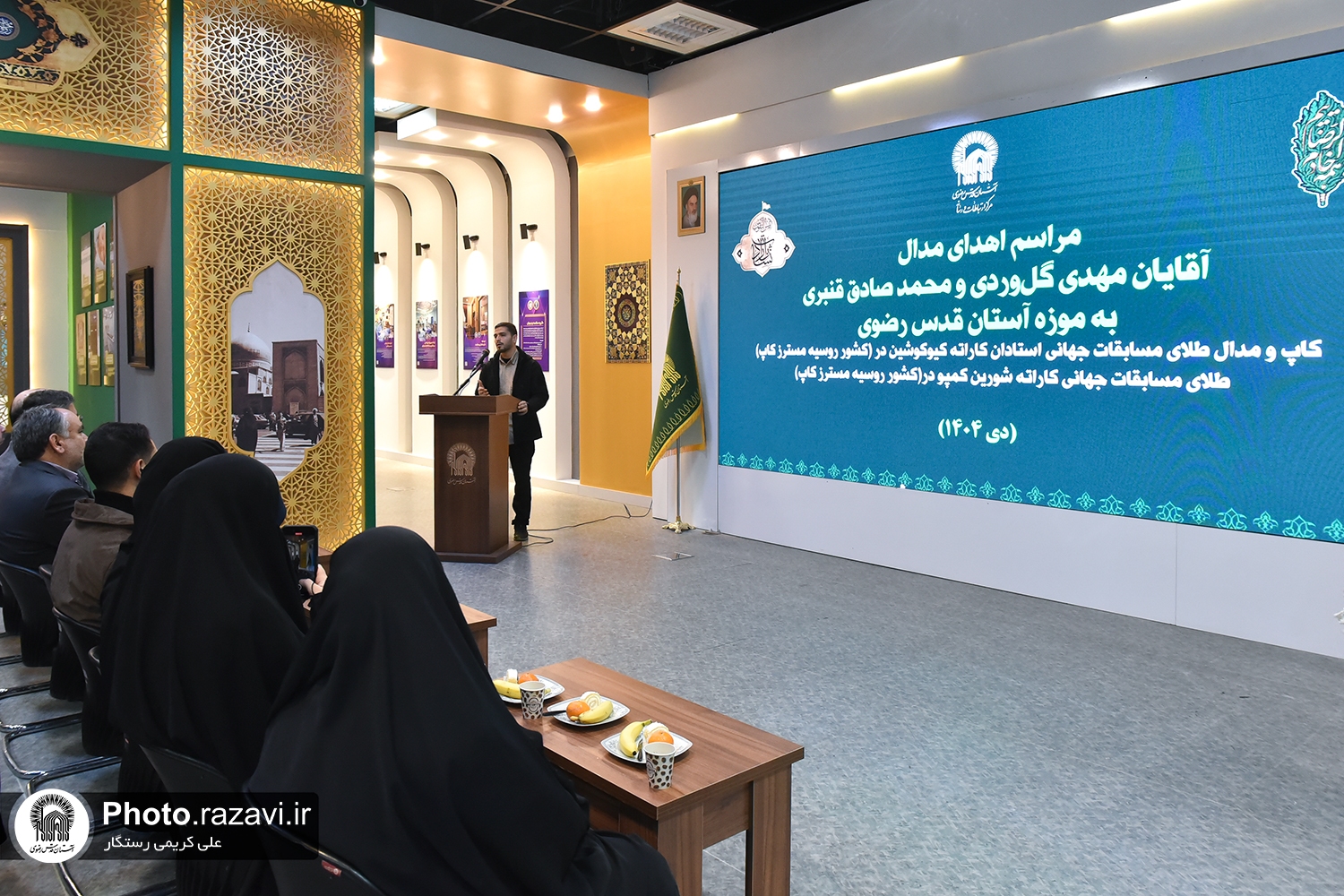 مراسم اهدای کاپ و مدال طلای مسابقات جهانی مستر کاپ ۲۰۲۵ و طلای مسابقات جهانی کاراته شورین کمپو کشور روسیه، توسط مهدی گل وردی و محمد صادق قنبری به موزه آستان قدس رضوی، روز پنج شنبه ۱۱ دی ۱۴۰۴ در مرکز نمایشگاه‌ها و همایش‌های حرم امام رضا علیه‌السلام برگزار شد.