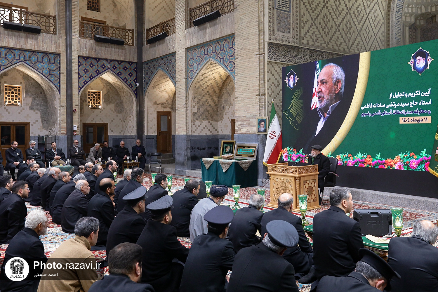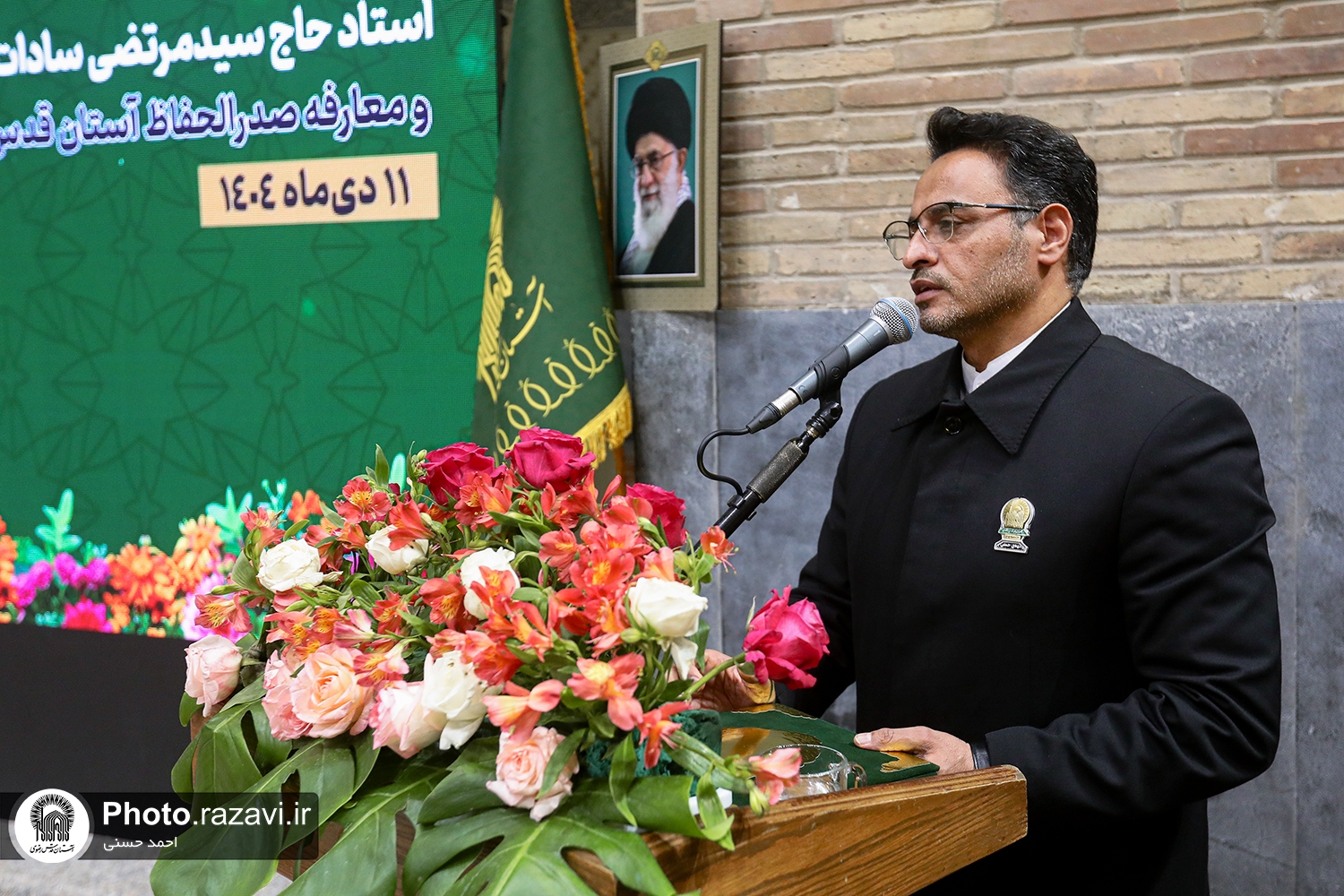 آیین تکریم استاد حاج سیدمرتضی سادات‌فاطمی و معارفه استاد مهدی حسنی به عنوان صدر الحفاظین حرم مطهر رضوی، روز پنجشنبه ۱۱ دی ۱۴۰۴ با حضور رضا خوراکیان؛ مدیر عالی حرم مطهر در مدرسه تاریخی دودرب برگزار شد.