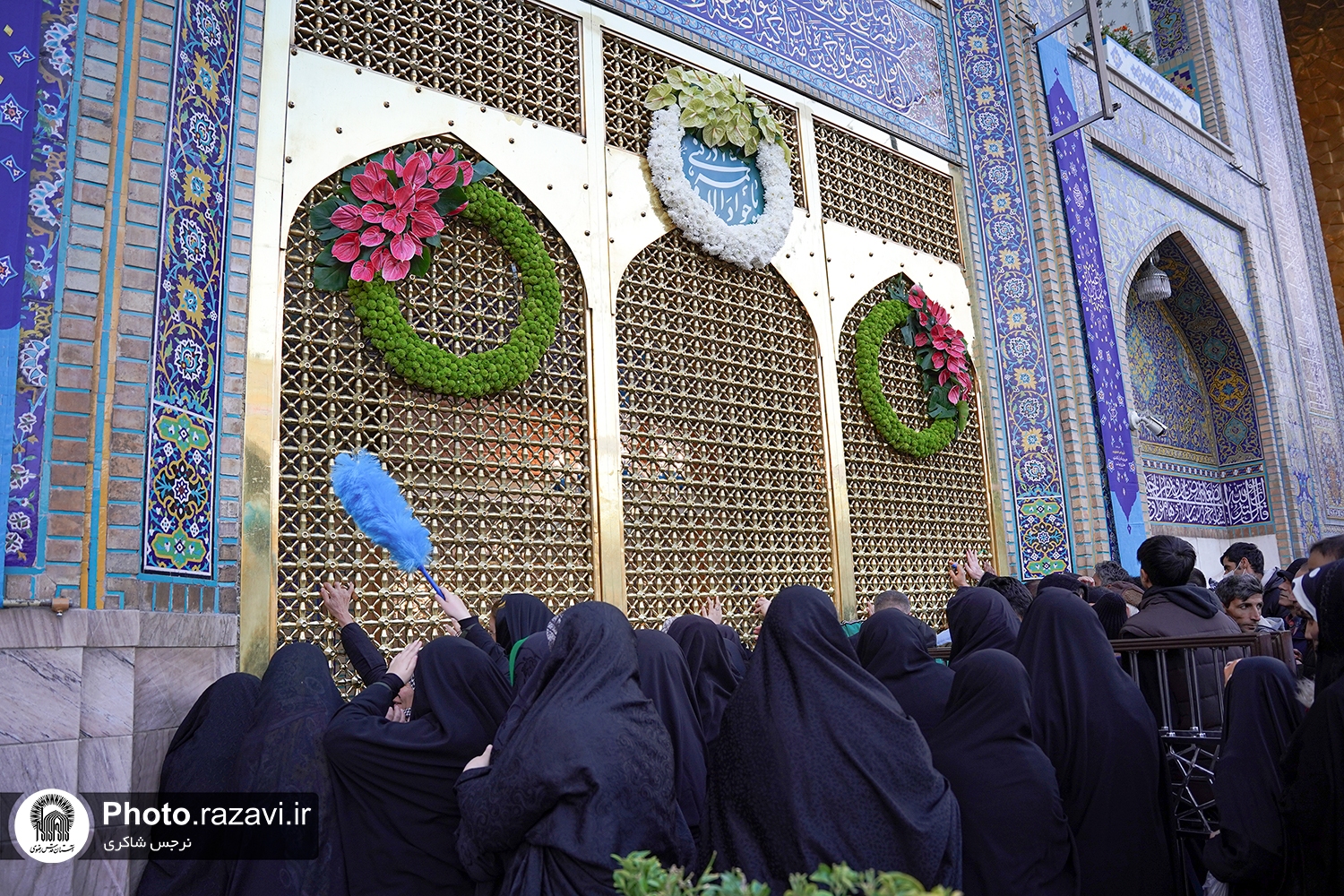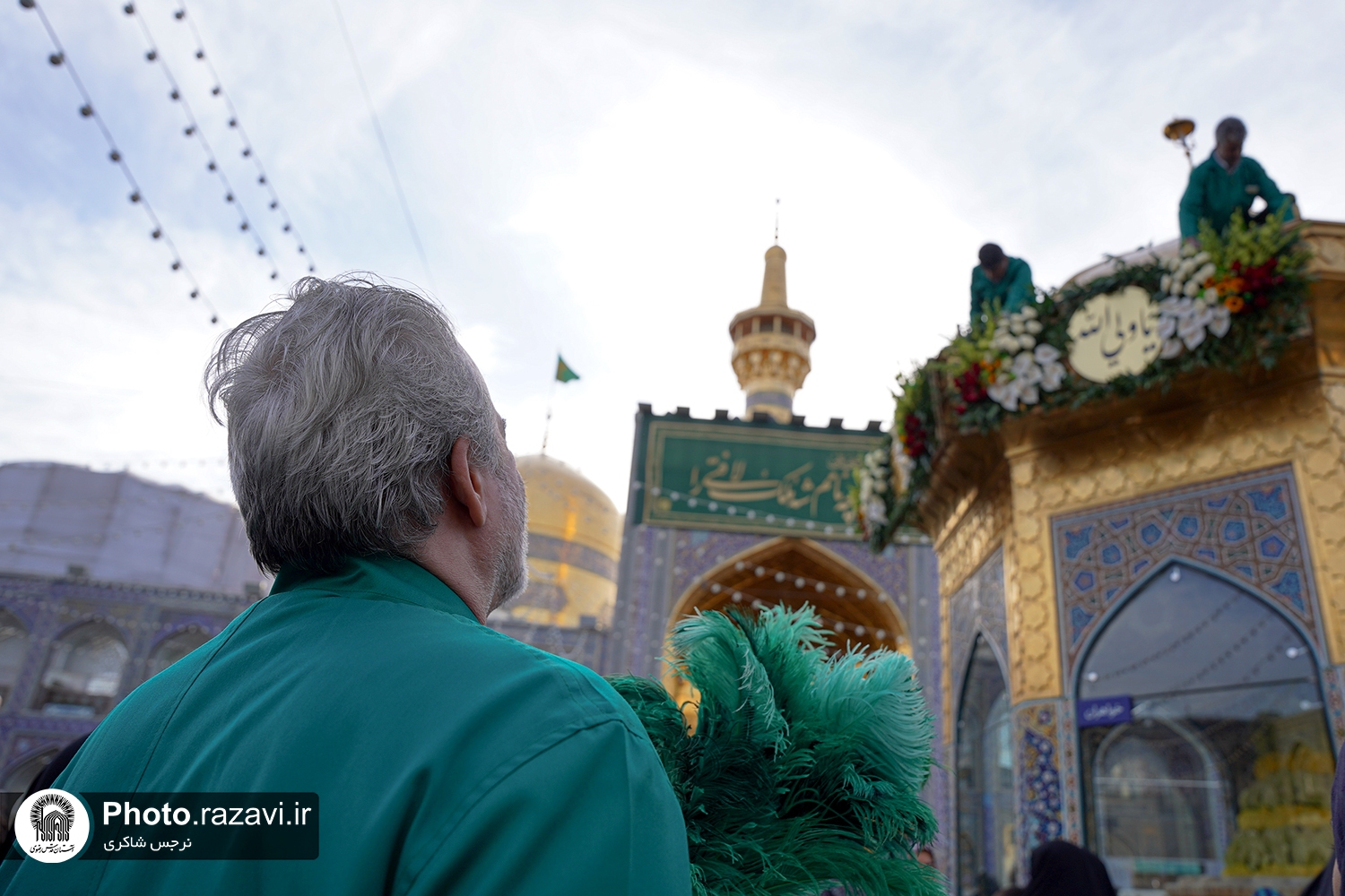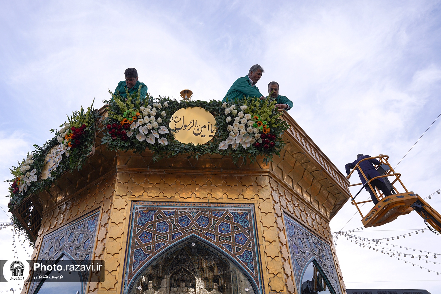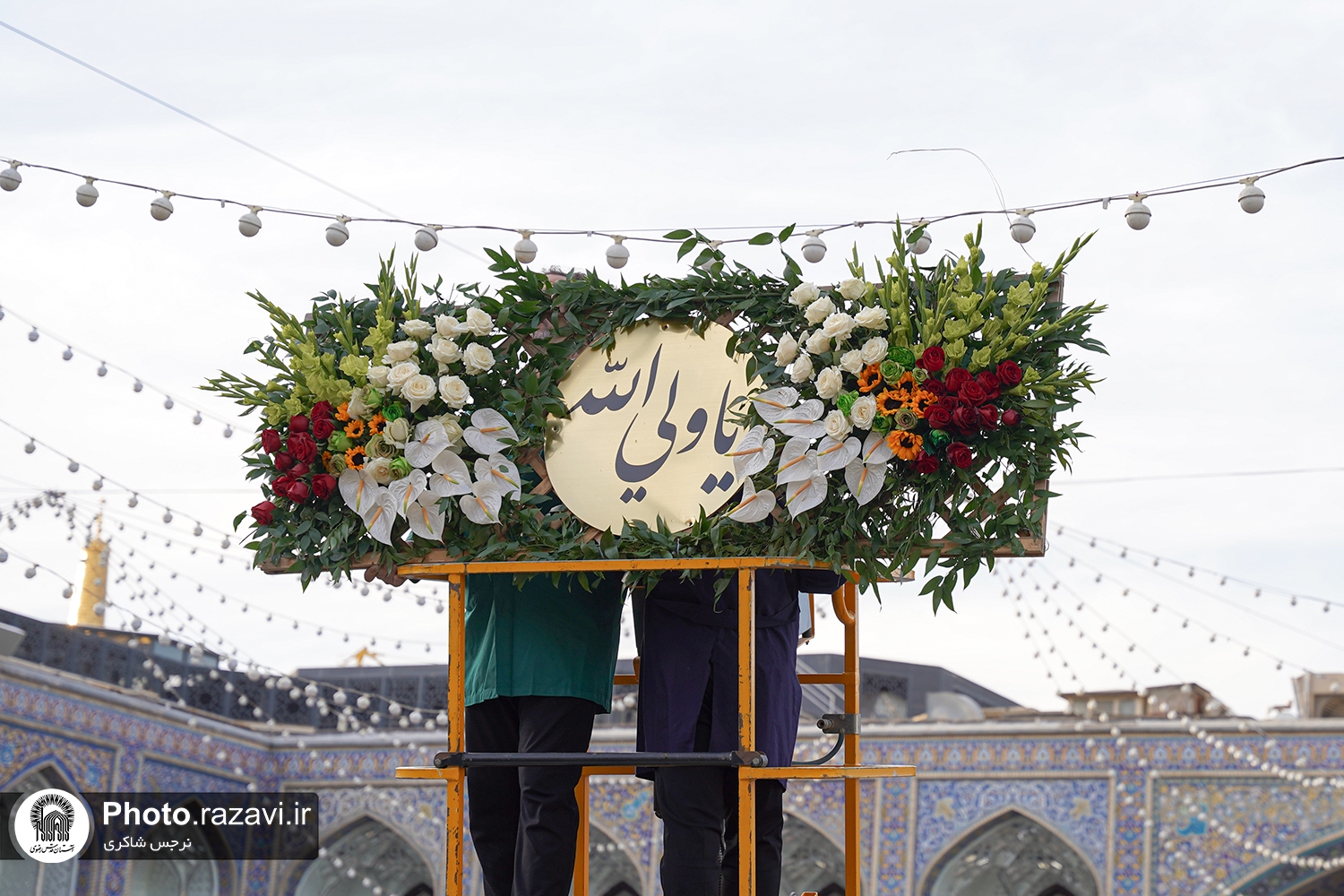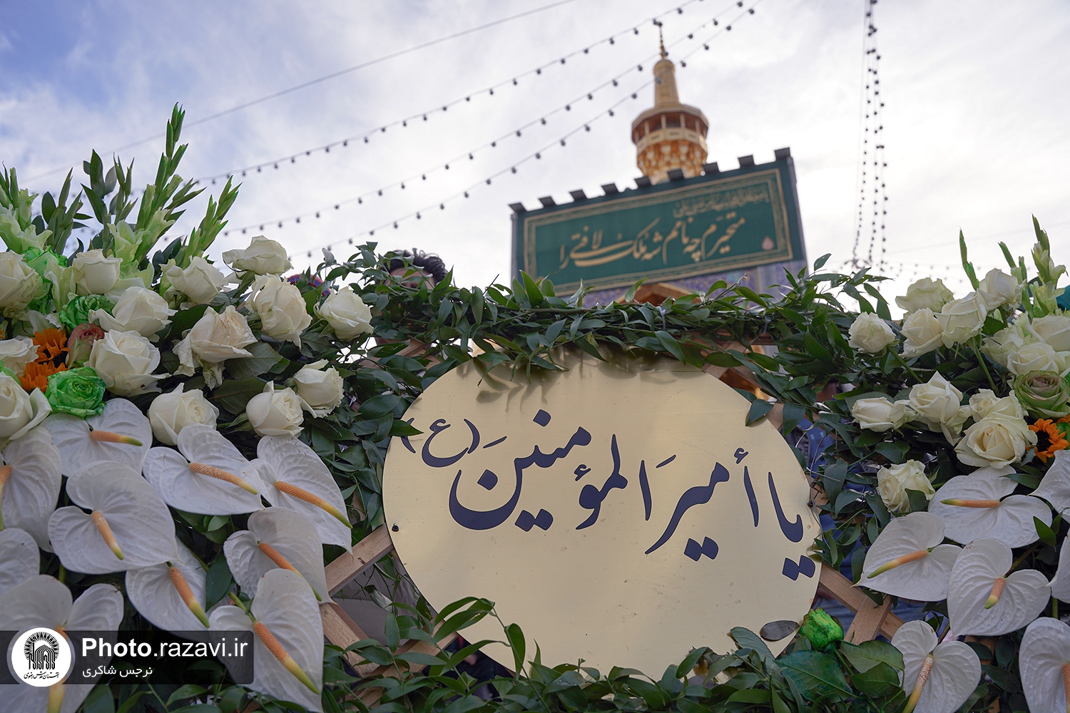 هم زمان با فرارسیدن میلاد باسعادت امیرالمومنین علی علیهالسلام، صحن و سرای حرم مطهر رضوی، عصر جمعه ۱۲ دی ۱۴۰۴ با گلآرایی گسترده، فضاآرایی شد تا جلوهای شاد و دلنشین در بارگاه ملکوتی امام رضا علیهالسلام ایجاد شود و زائران و مجاوران بارگاه منور رضوی جهت عرض تبریک به آستان امام هشتم مشرف شدند.