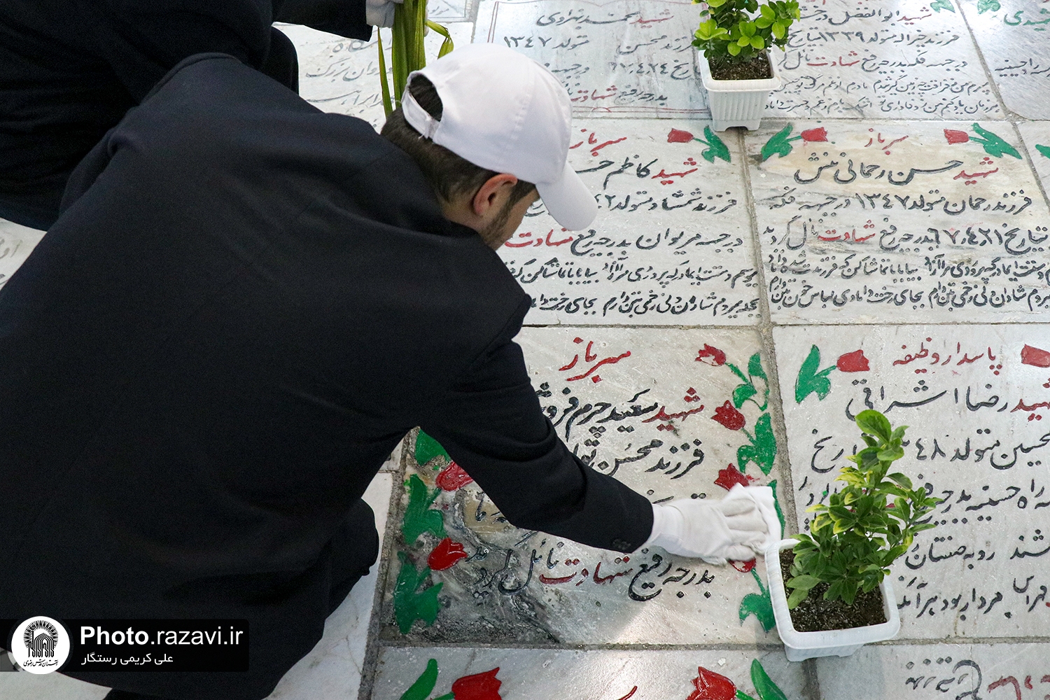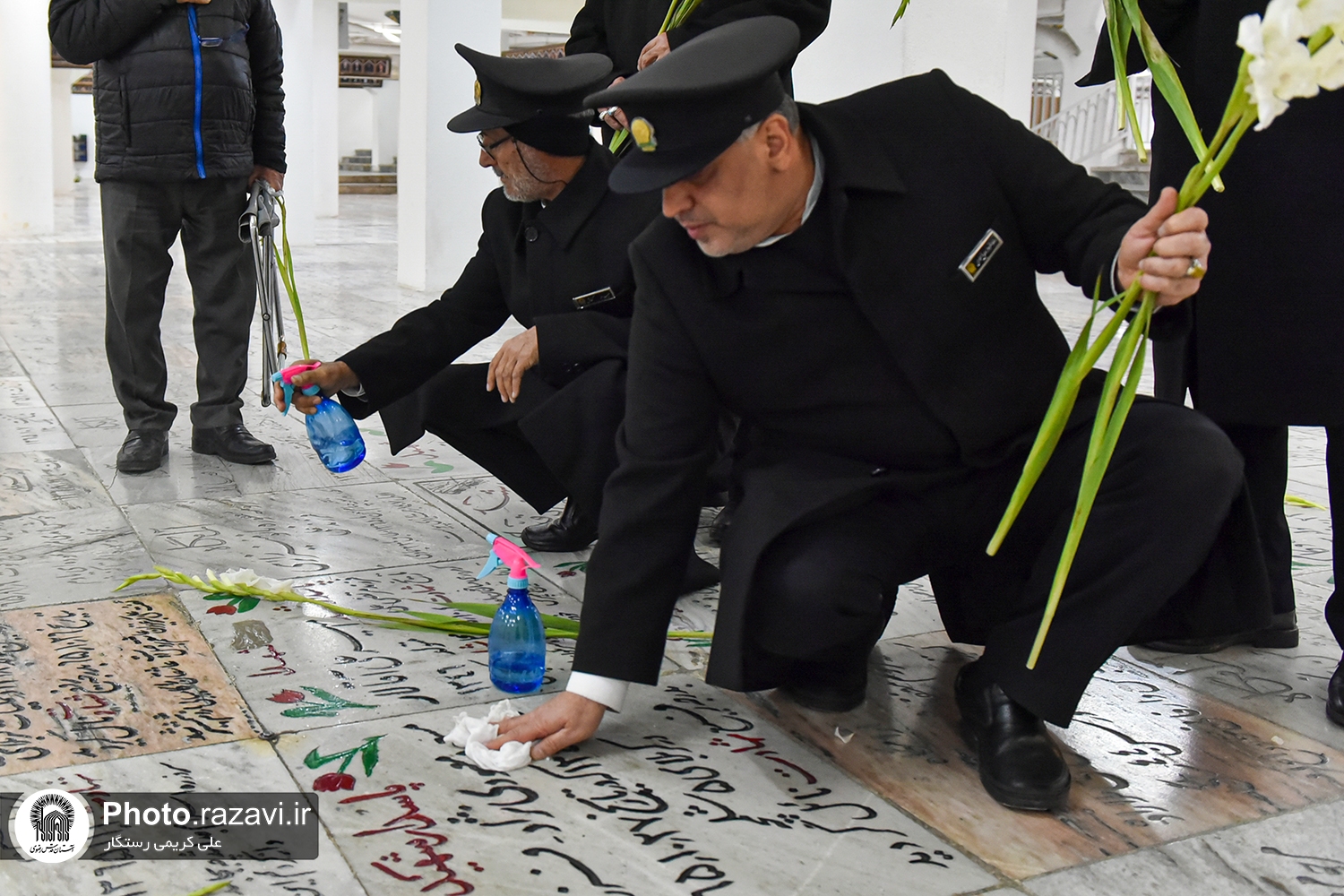 غبارروبی مزار شهدای مدفون در حرم مطهر رضوی
