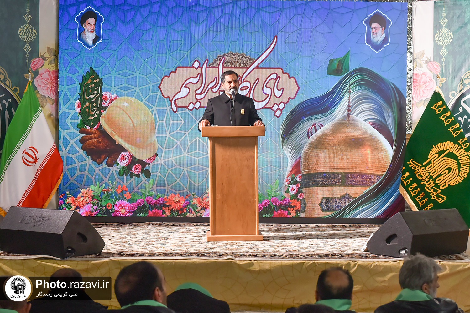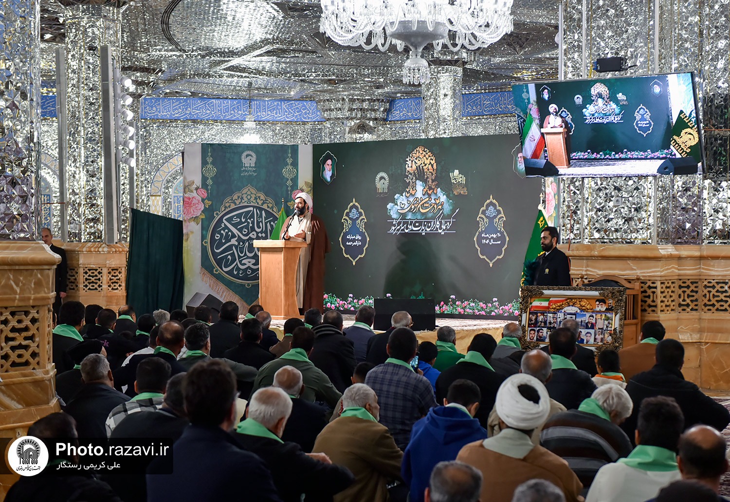 ویژه برنامه طرح مهر درخشان رضوی با حضور ۱۵۰۰ نفر از کارگران زیارت اولی معادن کشور و جمعی از خانوادههای آسیبدیدگان حادثه بندر شهید رجایی، روز دوشنبه ۲۰ بهمن ۱۴۰۴ همزمان با ایام الله دهه فجر انقلاب اسلامی در رواق دارالمرحمه حرم مطهر رضوی برگزار شد.