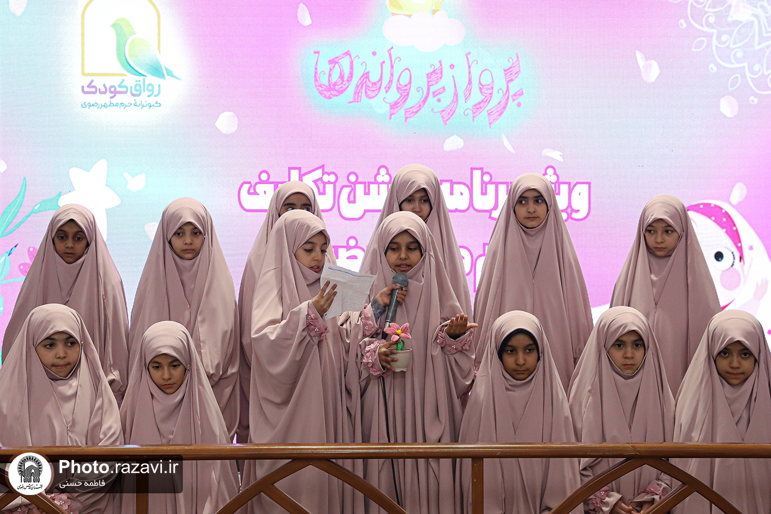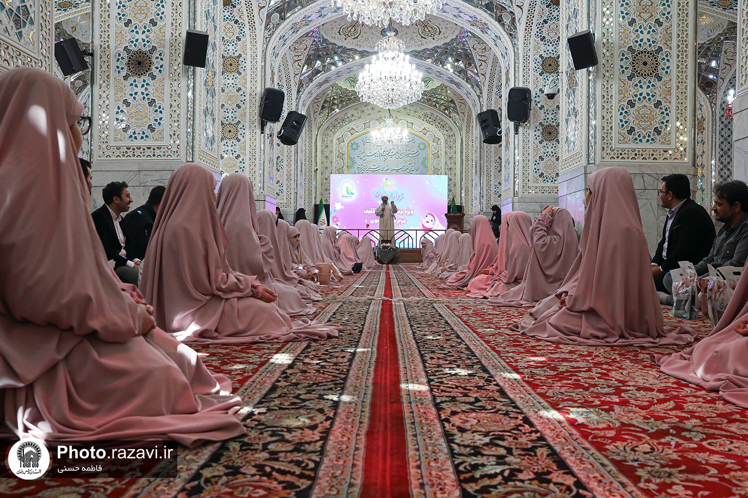 مراسم جشن عبادت دختران مدرسه مرآت با حضور پدران دانش‌آموزان، روز پنجشنبه ۲۳ بهمن ۱۴۰۴ در رواق دارالهدایه حرم مطهر رضوی برگزار شد.