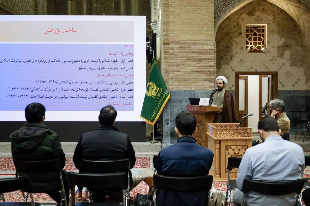 به گزارش آستان نیوز در این مراسم، که امروز ۲۸ بهمنماه ۱۴۰۴ در مدرسه دودرب حرم مطهر رضوی برگزار شد، رضا محمدآبادی، دانشجوی کارشناسی ارشد دانشگاه علوم اسلامی رضوی، با ارائه پژوهشی گفتمانی به تبیین «مواجهه تاریخی نظام انقلابی ایران با مفهوم توسعه» پرداخت و تأکید کرد: توسعه یکی از مفاهیم بنیادین تاریخ معاصر ایران پس از مواجهه جامعه ایرانی با تجدد غربی است.