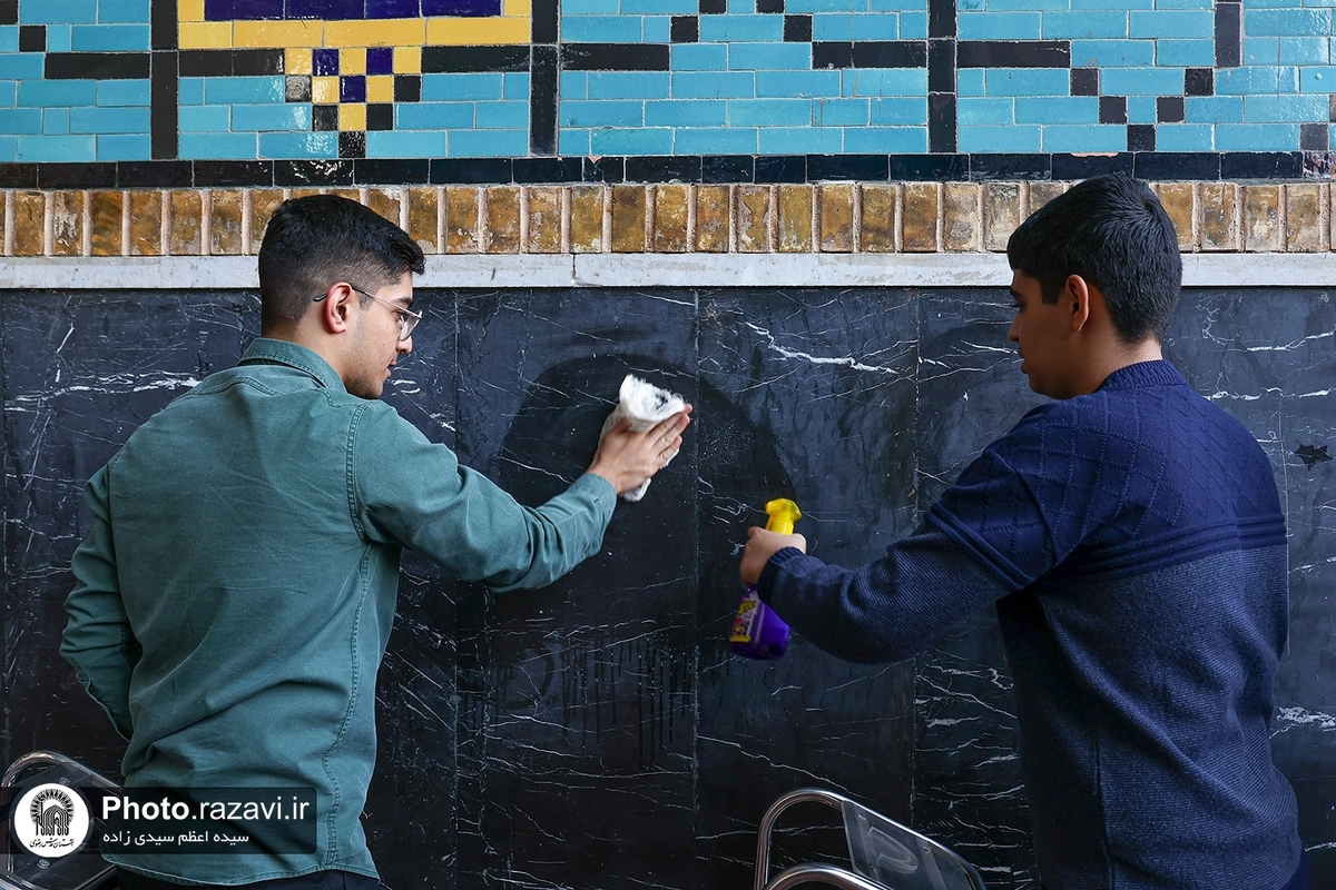 غبارروبی مسجد گوهرشاد با مشارکت دانش‌آموزان؛ نمادی از عشق و خدمت