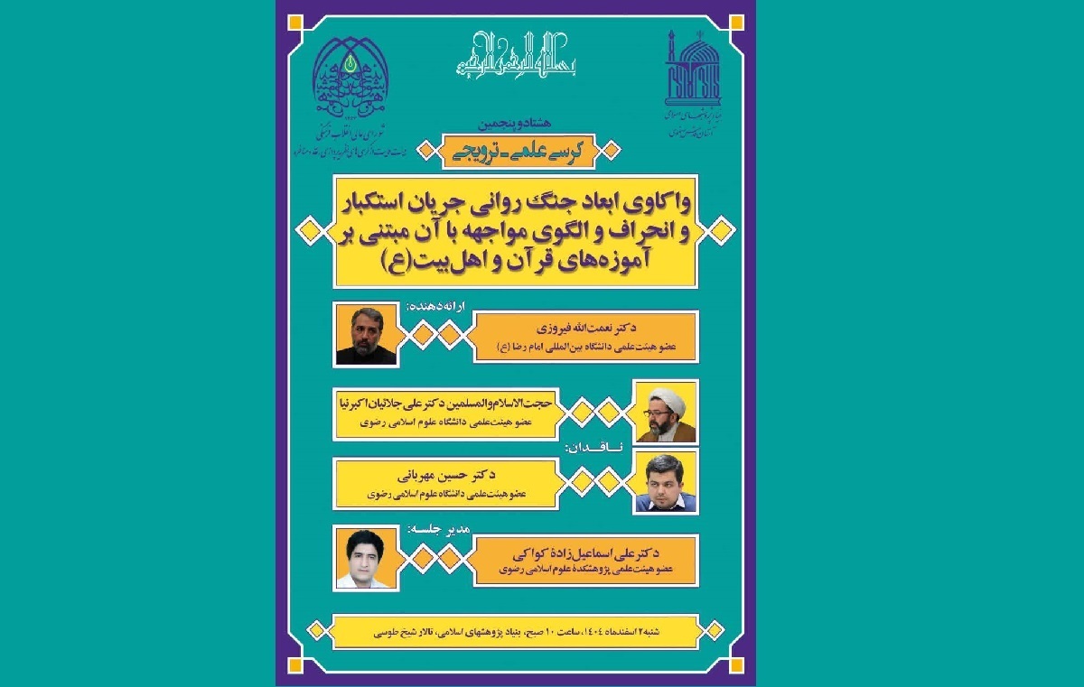 در این نشست علمی، دکتر نعمتالله فیروزی، عضو هیئتعلمی دانشگاه بینالمللی امام رضا (ع)، بهعنوان ارائهکننده به تبیین ابعاد نظری و کاربردی جنگ روانی در بستر گفتمان قرآنی و روایی خواهد پرداخت و تلاش میکند با رویکردی حکمی و عرفانی، به تحلیل سازوکارهای جریان استکبار در عرصه جنگ ادراکی و رسانهای و نیز ارائه الگوی مواجهه مبتنی بر معارف اهلبیت (ع) بپردازد.