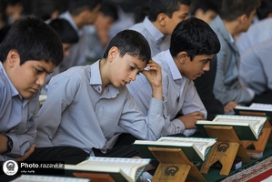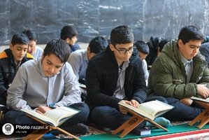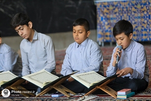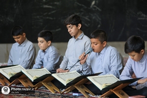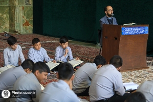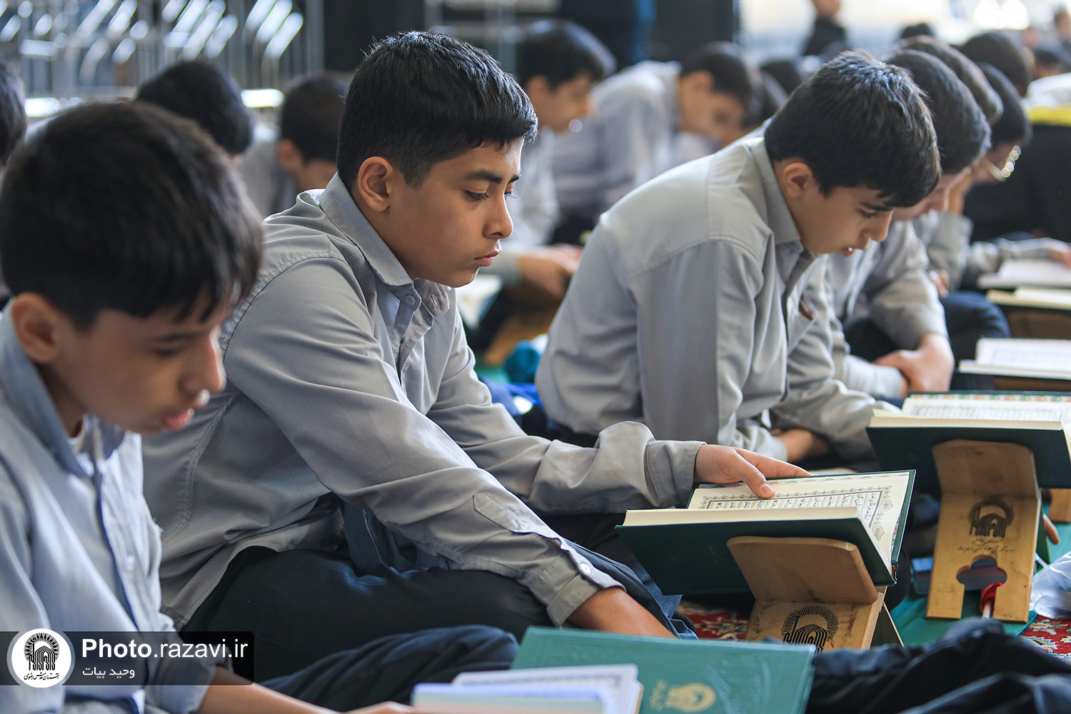 محفل سنتی قرآن کریم با حضور دانش‌آموزان در حرم مطهر رضوی
