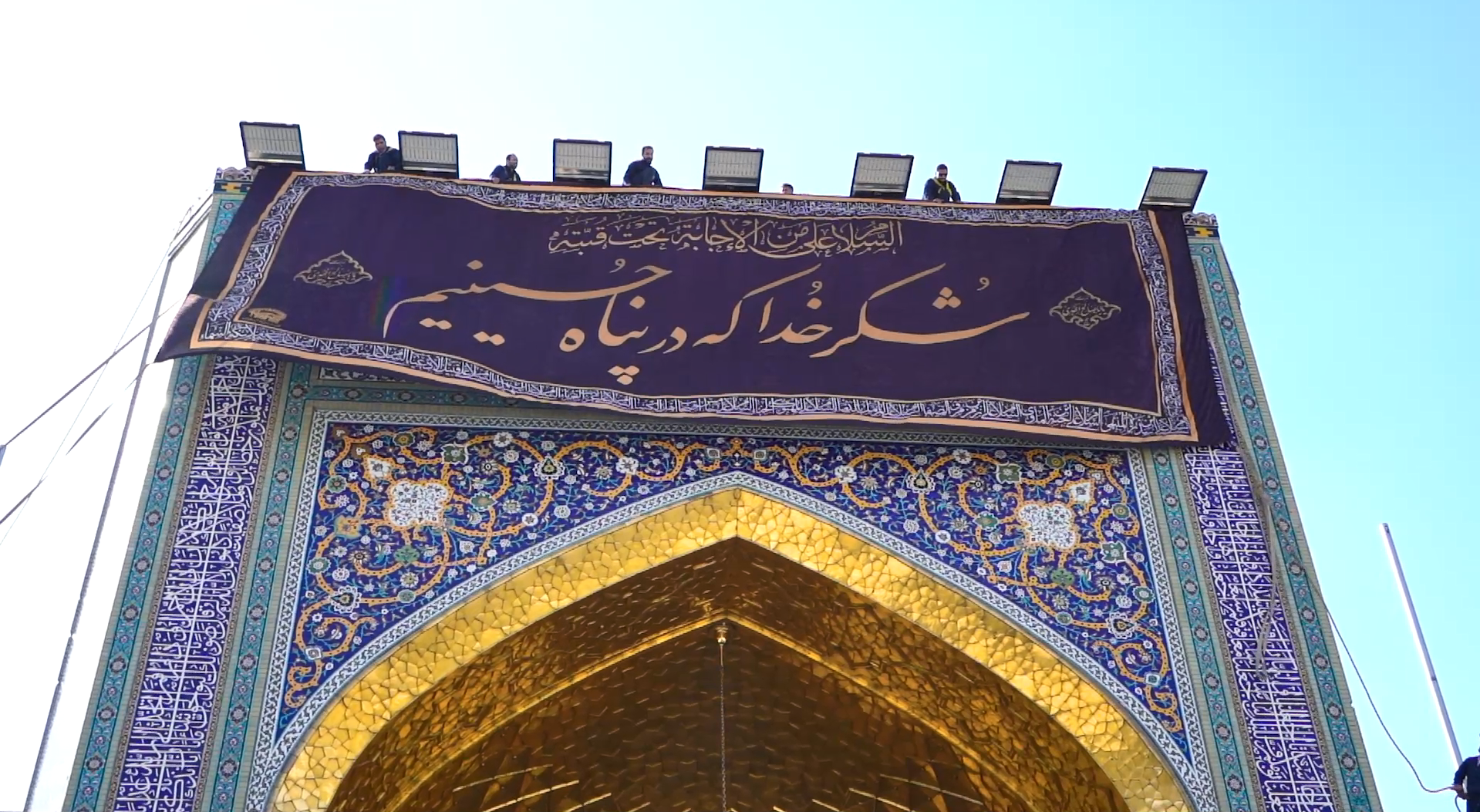 اعلان عزای سیدالشهدا(ع) بر فراز گلدسته های بارگاه منور رضوی