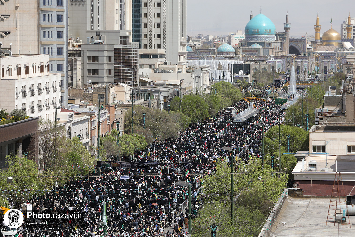 تصاویر هوایی حماسه حضور مردم و خادمان بارگاه رضوی در راهپیمایی روز قدس