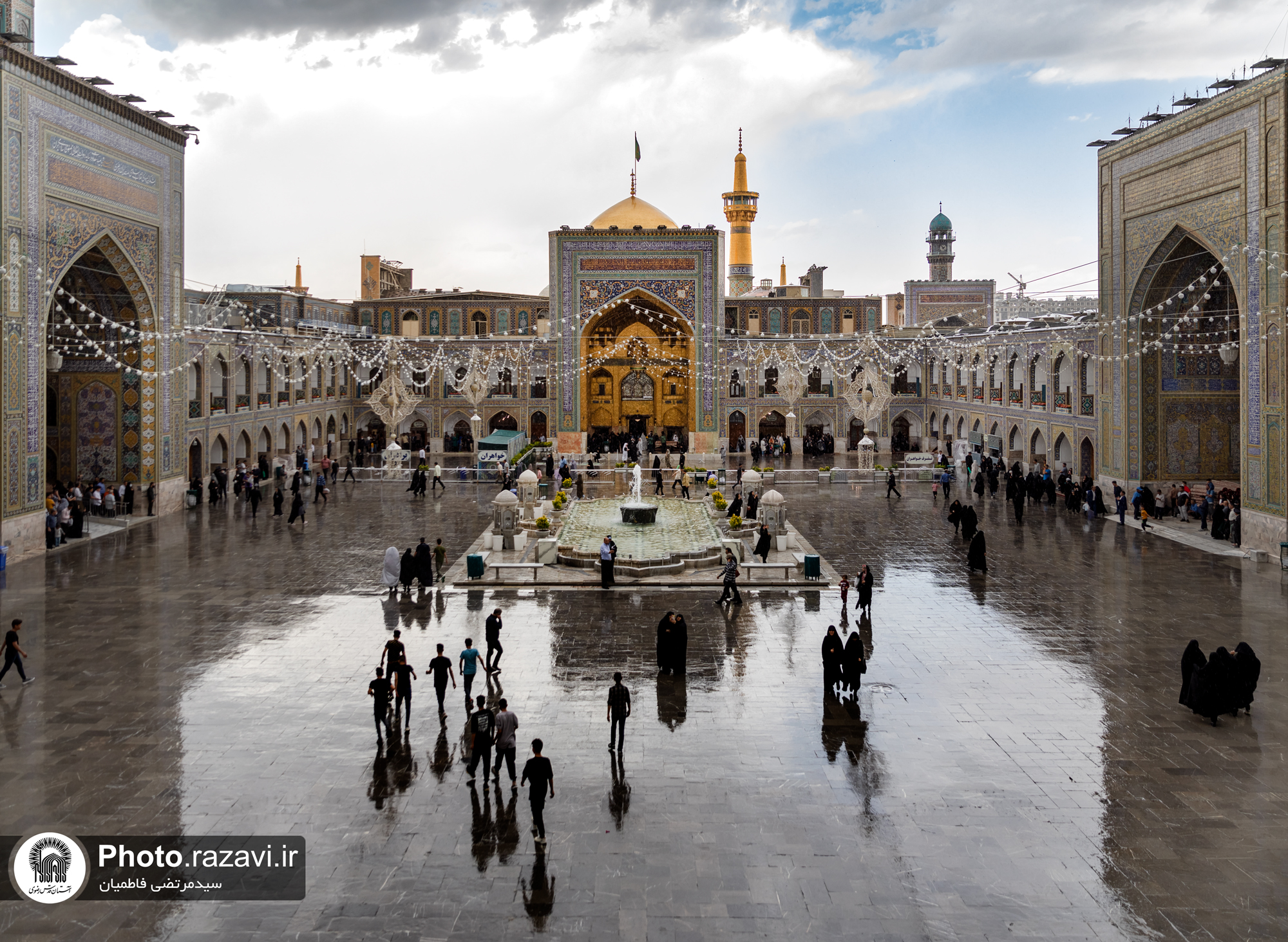 با آغاز بارش باران ، فضای حرم مطهر امام رضا علیهالسلام رنگ و بویی متفاوت به خود گرفته است. انعکاس نور گنبد طلایی بر زمینهای خیس، حرکت آرام زائران با چترهایی در دست، و سکوتی آمیخته با معنویت، جلوهای خاص از این مکان مقدس را به تصویر میکشد.
