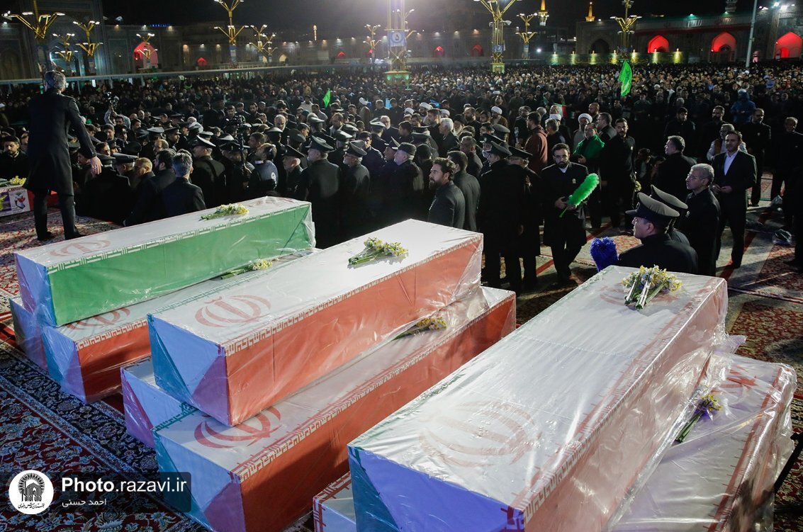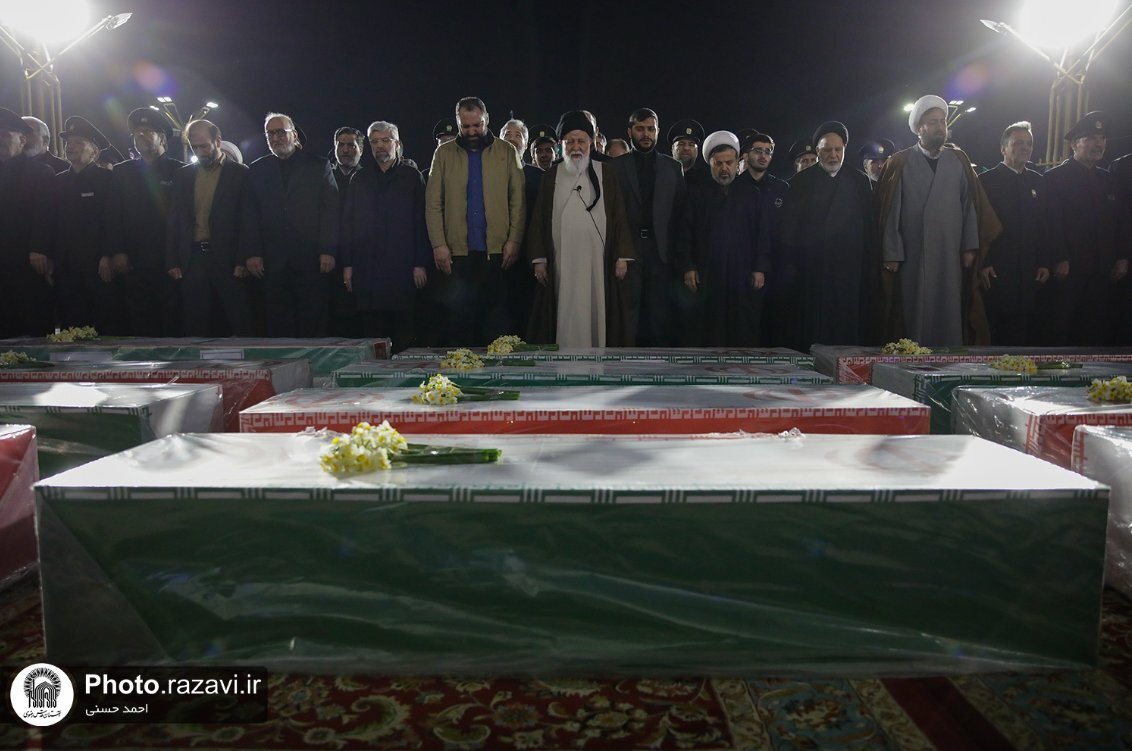 مؤرخہ 19جنوری2026 بروز سوموار کوحالیہ بد امنیوں میں ملوث تخریب کاروں اور فسادیوں کی مذمت اور ملکی سلامتی کے دفاع میں شہید ہونے والے شہداء کے تشیع جنازے کے مراسم مشہد مقدس کی ولایتمدار عوام کی شرکت سے حرم امام رضا(ع) میں منعقد کئے گئے ۔
