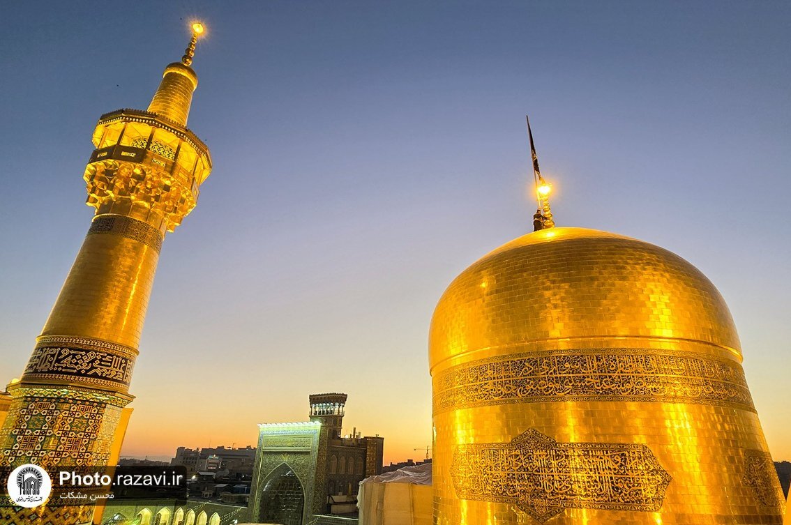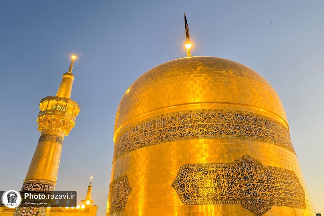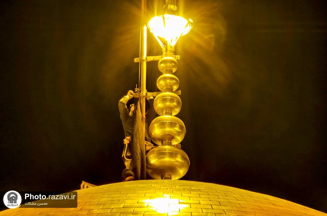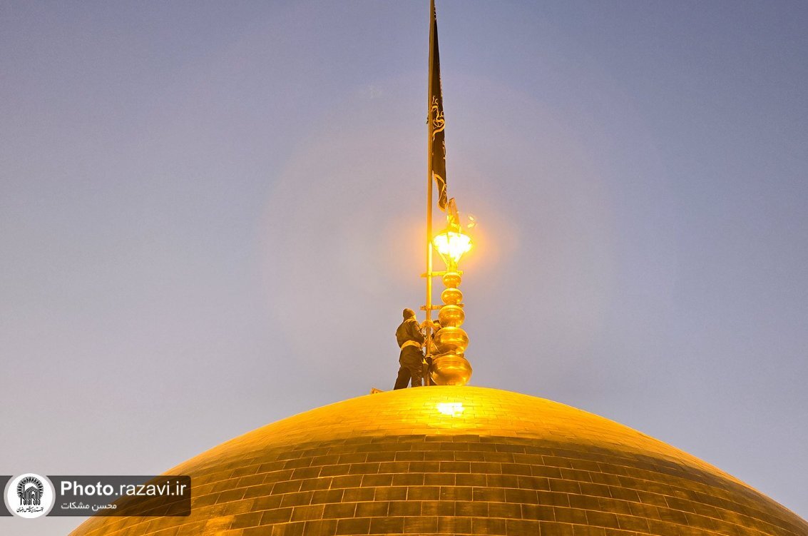 حرم امام رضا(ع) کے سنہری گنبد پر سوگ کی علامت کے طور پر سیاہ پرچم نصب