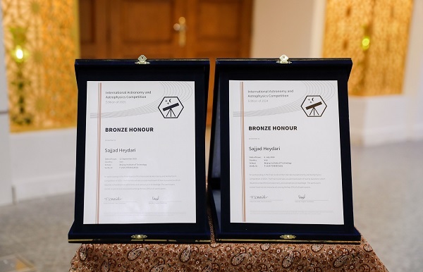 مؤرخہ 4 ستمبر 2025 بروز ہفتے کو آستان قدس رضوی کےآڈیٹوریم ہال میں فیزکس2024 اور فلکیات 2025 کے بین الاقوامی مقابلوں میں جناب سجااد حیدری کے کانسی کے تمغوں کو آستان قدس رضوی کے میوزیم میں عطیہ کرنے کی تقریب منعقد کی گئی۔